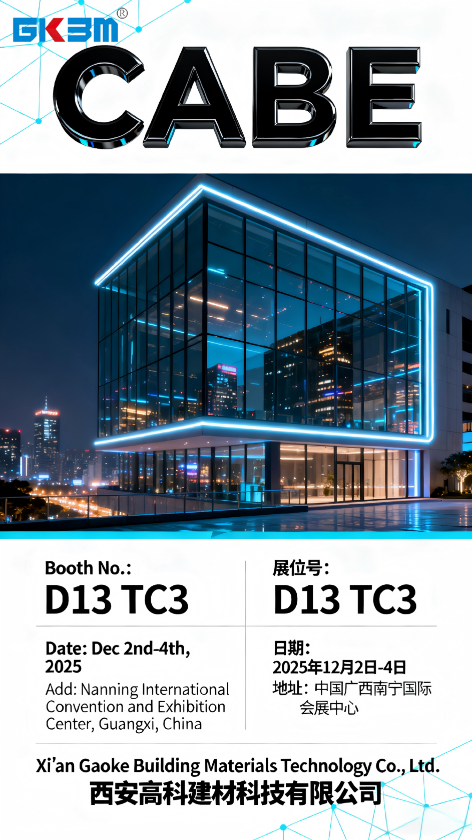 December 2-4, Hall 13, Booth D13B17-18, Nanning ASEAN Construction Expo—GKBM looks forward to meeting you there!